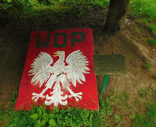 | Ceglany cokół na którym stał pomnik upamiętniający żołnierzy z oddziałów brandenburskich poległych w walkach o Przełęcz Łupkowską. |