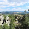 Masyw Czorneboh jest dość rozległy i silnie zalesiony. Autokarem podjeżdżamy stosunkowo wysoko, odjeżdżając z szosy S138 na drogę leśną, która prowadzi na śródleśny parking przy Wuischker Sattel. Na szczyt góry można iść asfaltem, ewentualnie znakowanym szlakiem. Ruszamy o godzinie 8.05. Znakowany szlak prowadzi w znacznej części leśnymi ścieżkami przez zakamarki tajemniczej góry. Wpierw jednak przez nieco ponad 800 metrów wiedzie asfaltową drogą, która obchodzi od północy jeden z niższych wierzchołków masywu Ziegelberg (467 m n.p.m.). Potem za znakami szlaku odbijamy w lewo na boczną drogę gruntową, z której niebawem odchodzimy w prawo na ścieżkę. Bardzo łagodnie zwiększamy wysokość. Niespodziewanie wchodzimy na asfaltową drogę, ale tylko chwilkę idziemy nią, po czym znów odbijamy na lewo. Dróżką, a następnie nieco kamienistą ścieżką wchodzimy na skryty pod drzewami lasu wierzchołek Czorneboh. Leżą na nim skalne wychodnie. Na zachodzie widać między drzewami budynek pobliskiej już gospody. Schodzimy do niej na godzinę 8.35. Robimy przerwę do godziny 9.00, wykorzystując ją na filiżankę kawy oraz wejście na wieże widokową. Taras tej wieży jest przeszklony i zadaszony. Jest w niej nieco hermetycznie, zaś widoków za wiele z niej nie ma, bo albo wysokie drzewa je zasłaniają, albo chmury. Po przerwie schodzimy na parking tą samą drogą. Docieramy do niego o godzinie 9.40.